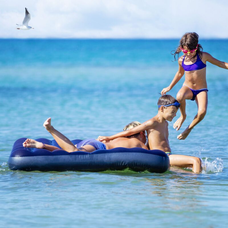 Spiaggia privata: puoi affittare un nostro pedalò, la canoa o semplicemente andare a farti una nuotata fino ai frangiflutti posti a 200 metri dalla costa. Anche quando il mare è “arrabbiato” e dà spettacolo, l’acqua in questo bacino lungo quasi un km è sempre più calma che all’esterno.